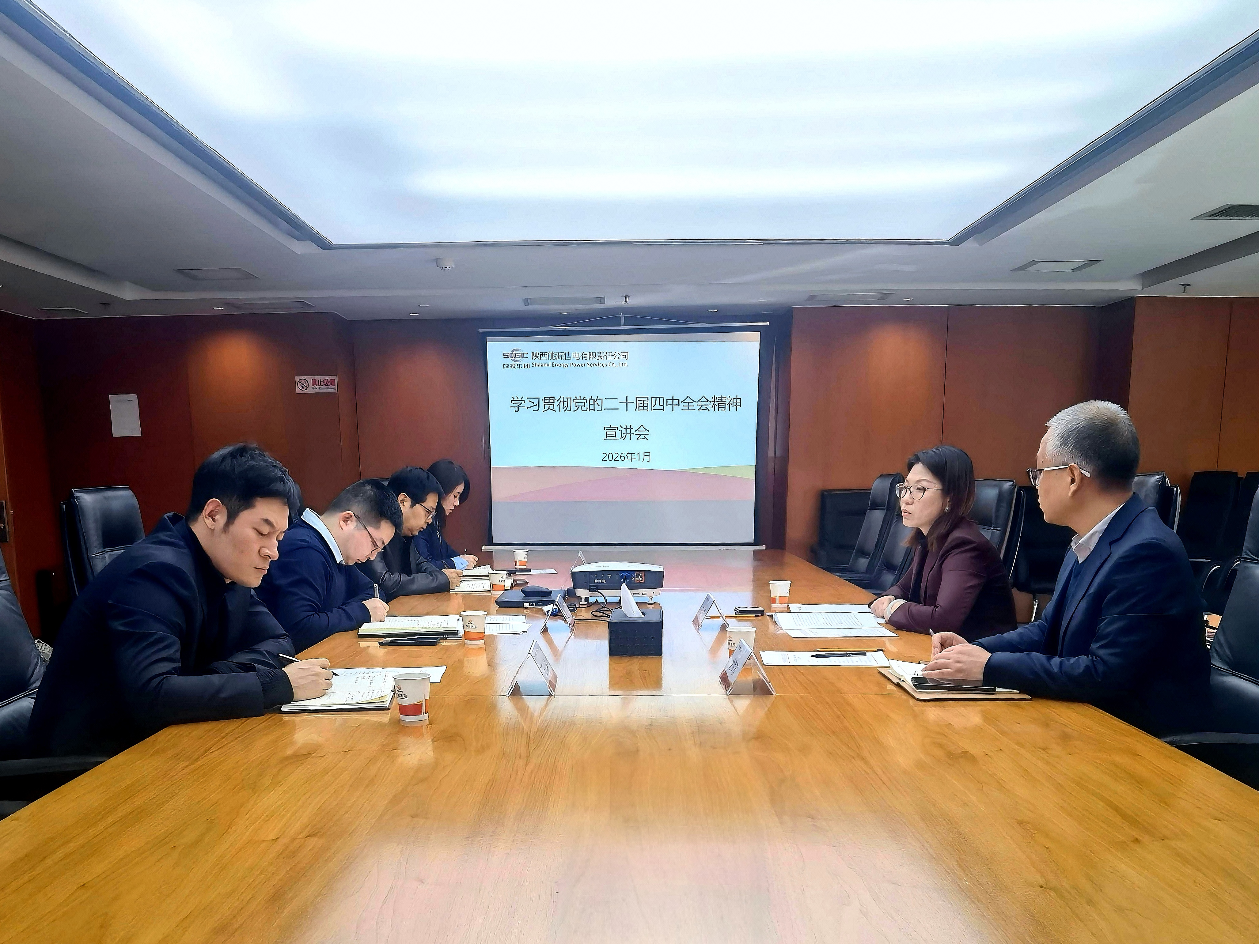 1月9日,皇冠足彩网官网首页总法律顾问兼首席合规官安懿到陕能售电宣讲党的二十届四中全会精神,皇冠足彩网官网首页内控审计部主任陪同。陕能售电党总支书记、董事长主持会议。
