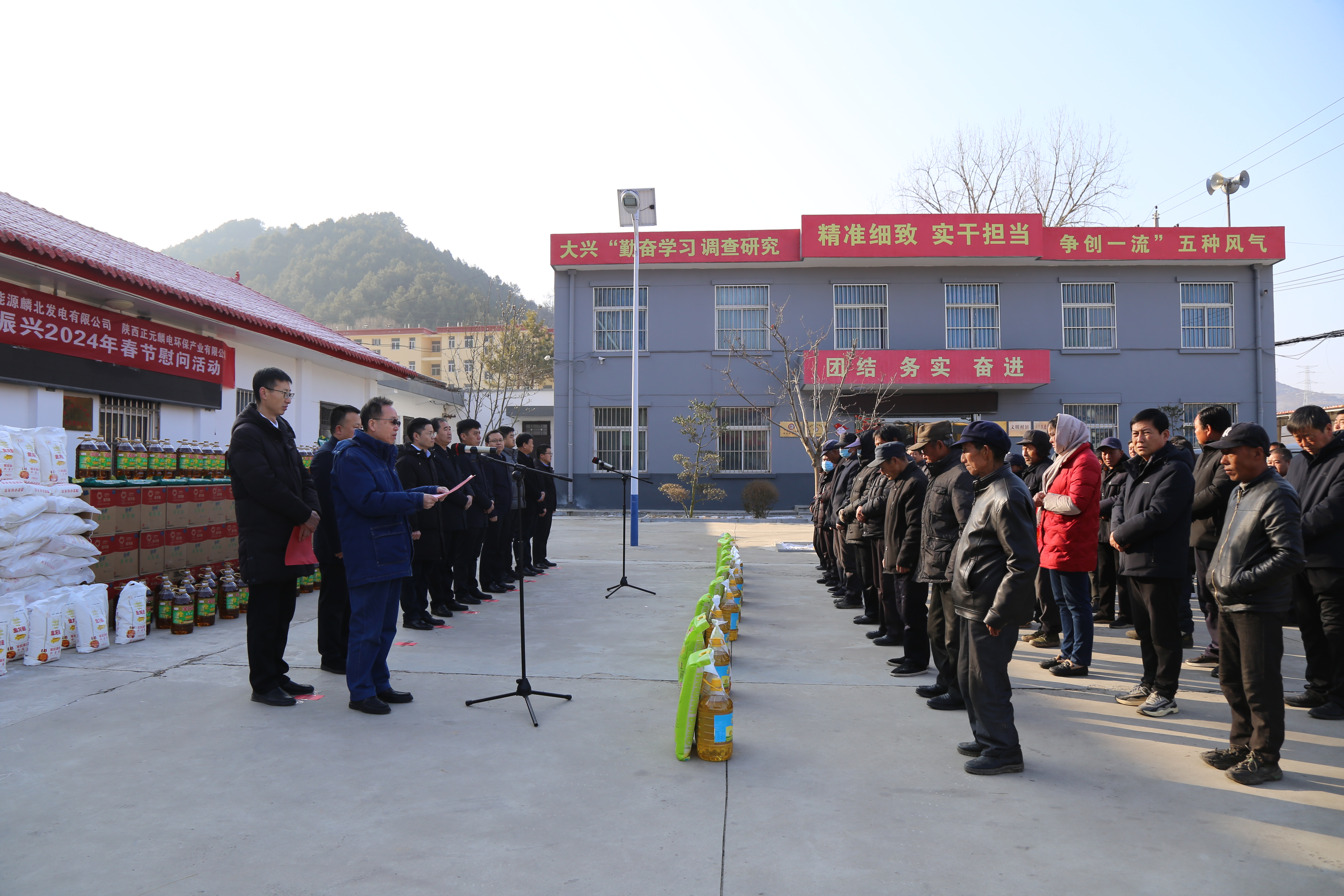 1月30日,麟北发电受邀与麟游经开区三家企业共同参与两亭镇开展助力乡村振兴2024年春节慰问活动。麟游县政协主席闫秉云出席活动,公司工会主席李文科代表麟北发电作了讲话。